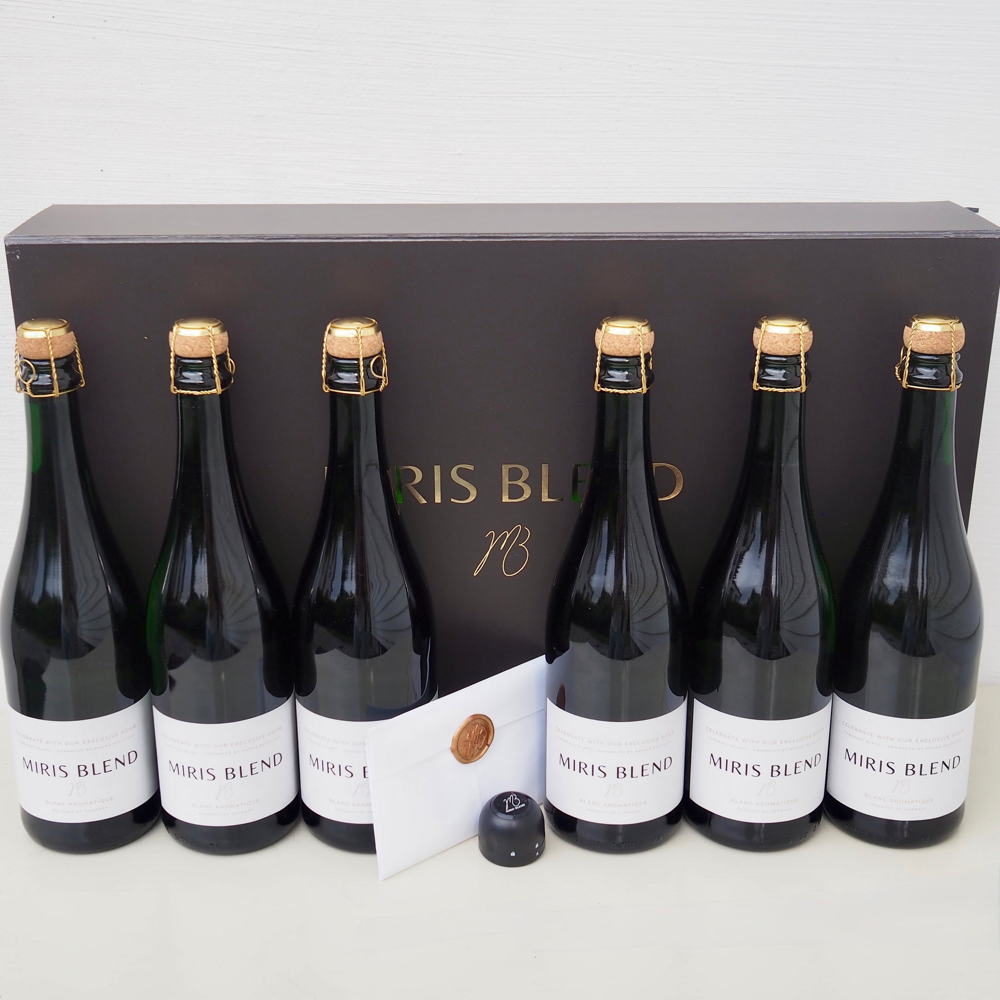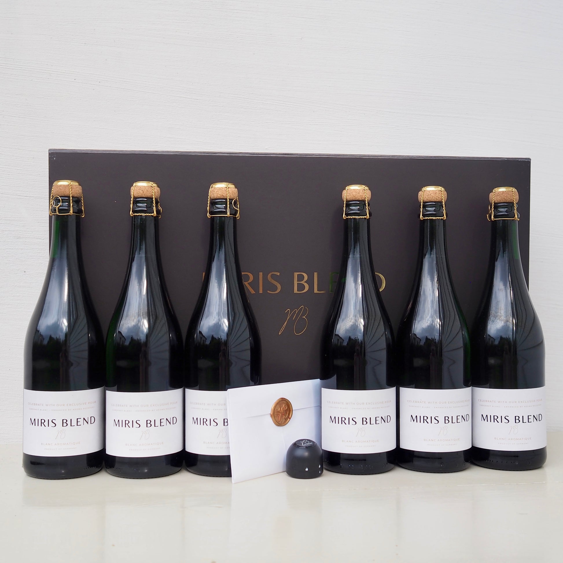 I gavepakken får du alltid minst én flaske av hver vin i Miris Blend-porteføljen. Hvilken vin du får to av kan variere.