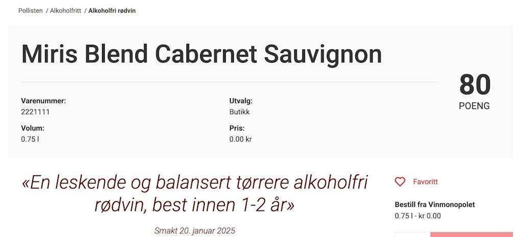 "En leskende og balansert tørrere alkoholfri rødvin, best innen 1-2 år"