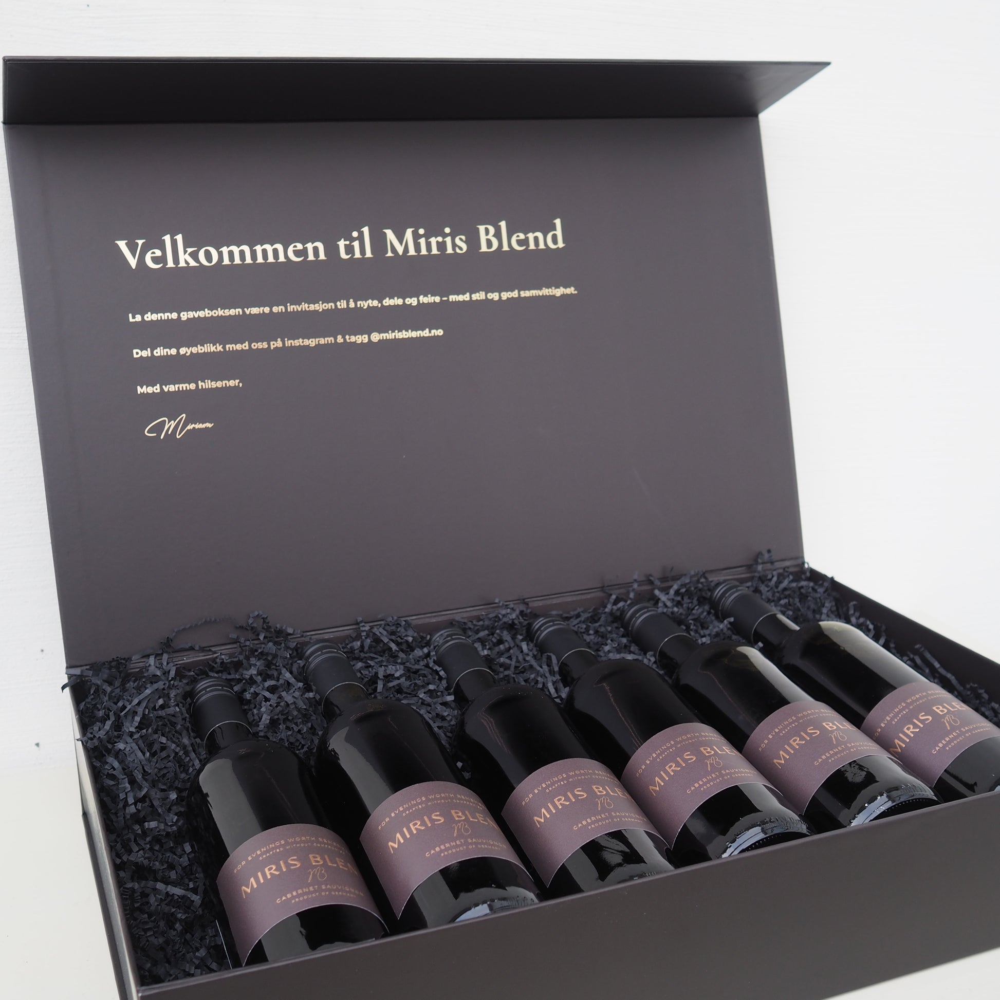Vinene blir presentert i en gullgravert eske, med håndskreven hilsen fra grunnleggeren, Miriam. Gratis frakt er også inkludert.