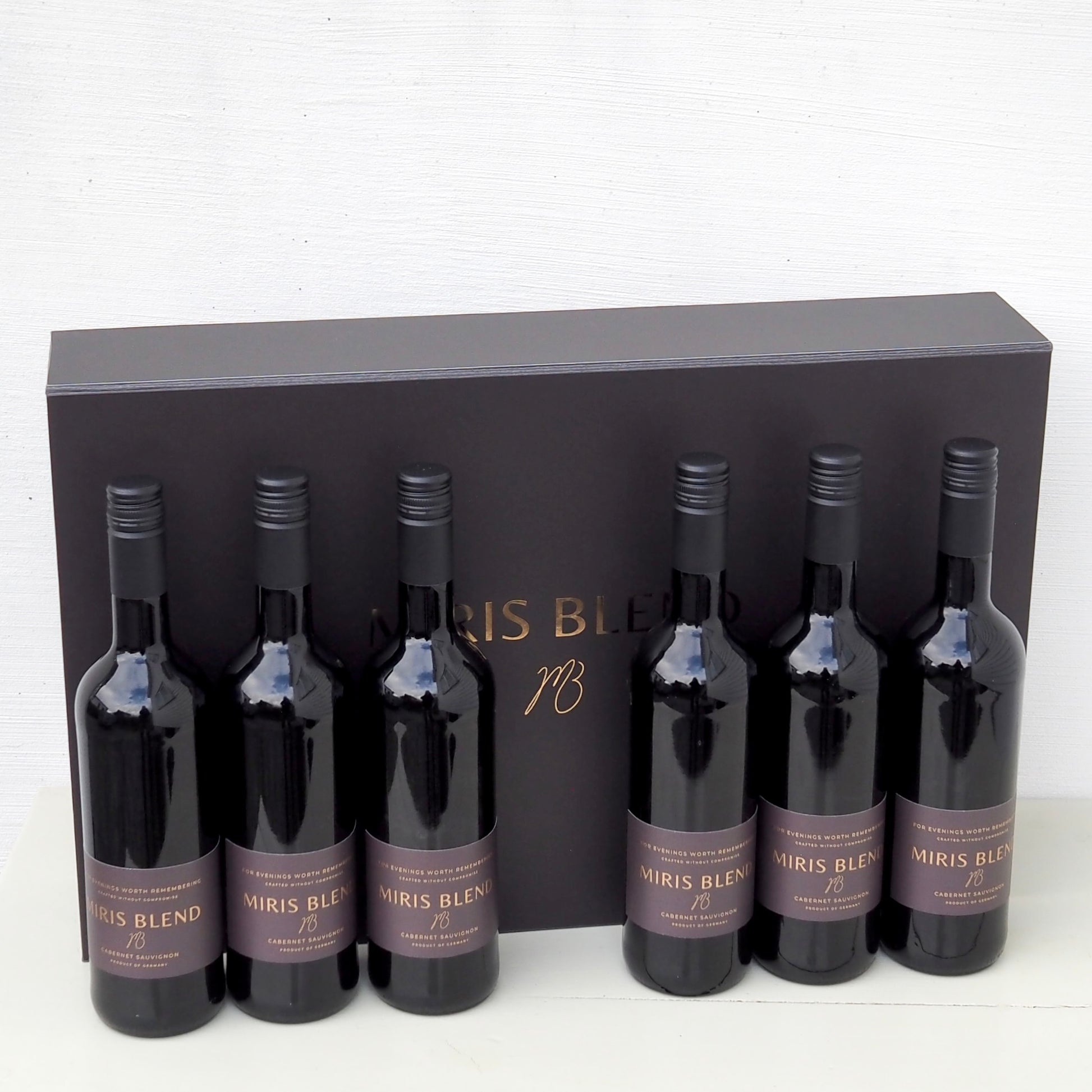 I gavepakken får du alltid minst én flaske av hver vin i Miris Blend-porteføljen. Hvilken vin du får to av kan variere.