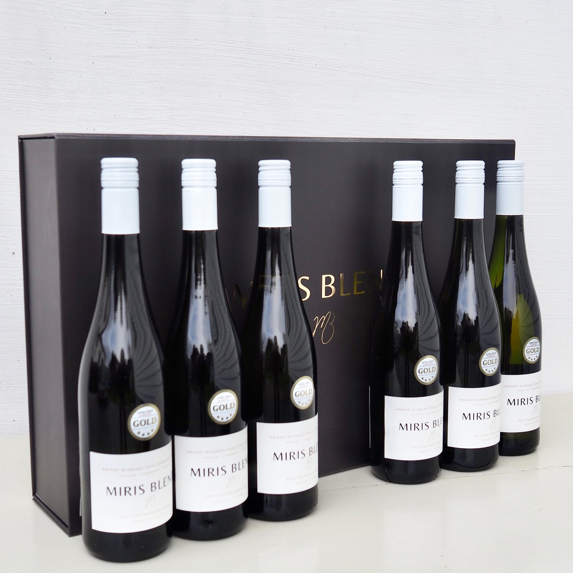 I gavepakken får du alltid minst én flaske av hver vin i Miris Blend-porteføljen. Hvilken vin du får to av kan variere.